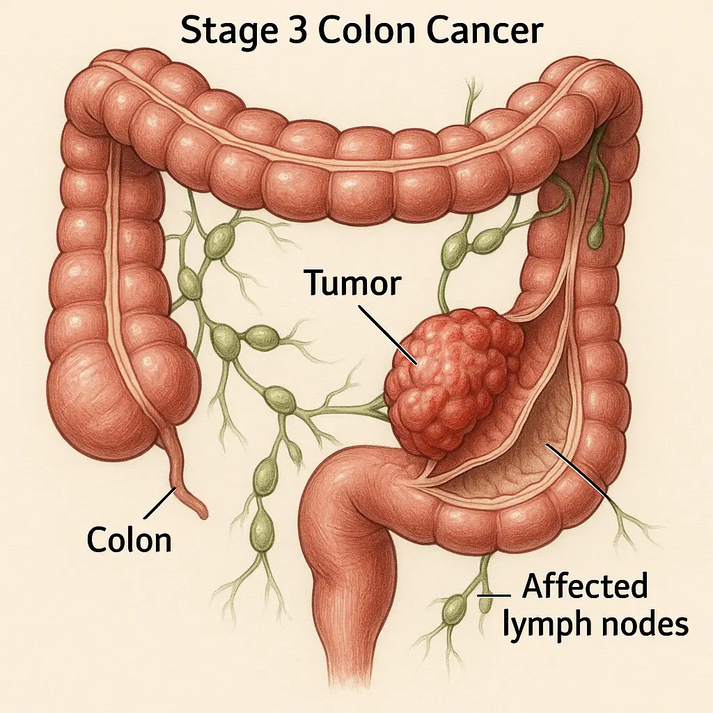 Colon cancer (also called colorectal cancer) is the development of malignant cells in the colon or rectum, both part of the large intestine. It begins as abnormal growths known as polyps. Over time, some polyps can transform into cancer, potentially spreading to other organs. Common symptoms include blood in the stool, changes in bowel movements, weight loss, abdominal pain, and fatigue.mayoclinic+2